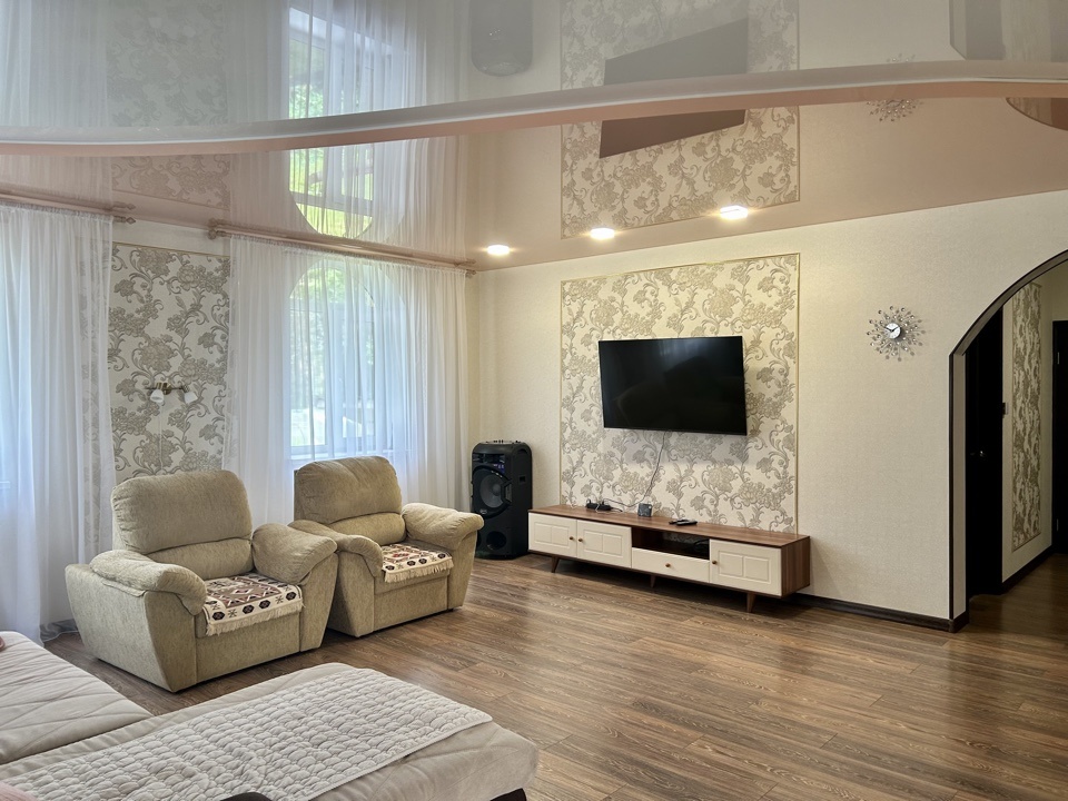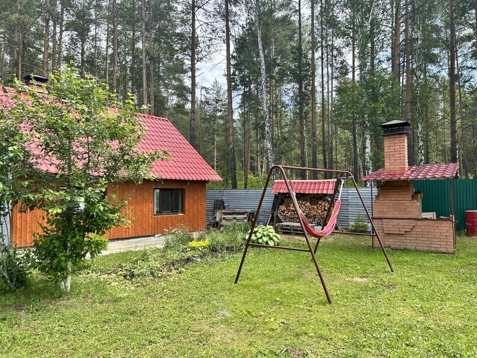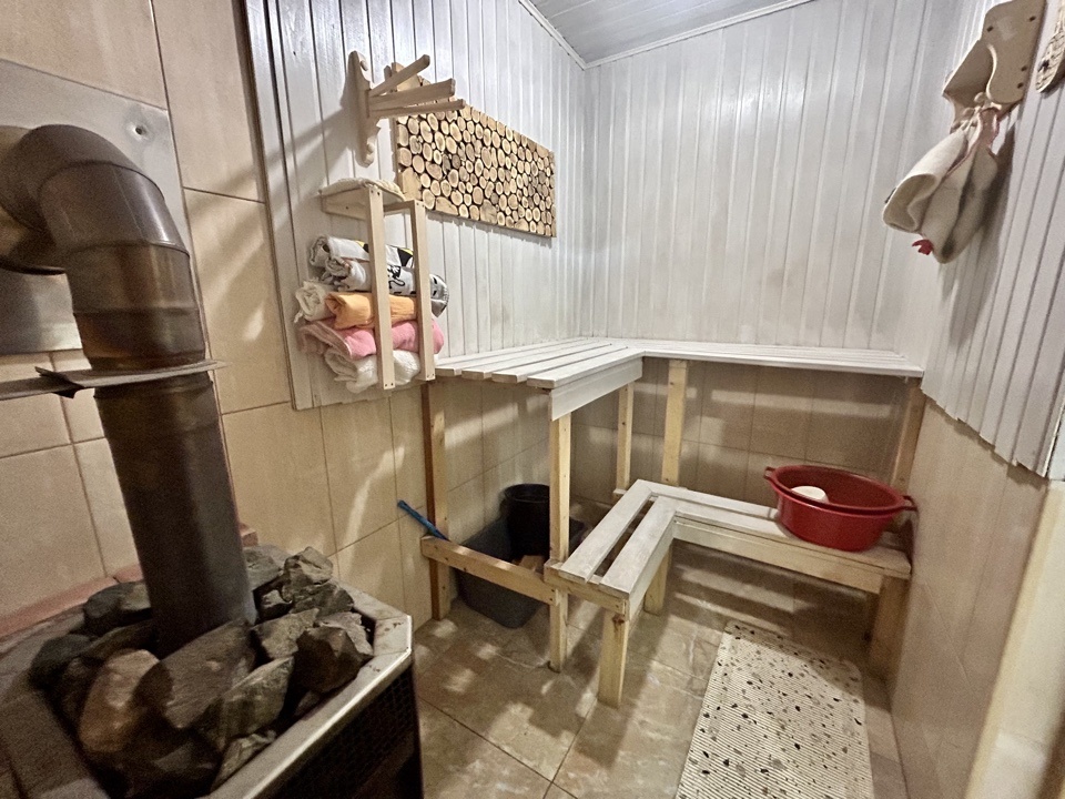 Гостевой дом 6*6 кв.м., из бруса, полностью возведен и утеплен, крыша металлочерепица. Заведено электричество, вода из скважины с термокабелем, оборудован слив воды в отдельную выгребную яму. Внутри выложена большая печь из огнеупорного кирпича на 3 отделения (плита, камин, лежанка). Вы очень легко можете переоборудовать его в баню.Рядом с домом зона барбекю - печь выложена из огнеупорного кирпича, имеет два отделения: для приготовления шашлыка и плита для казана.
