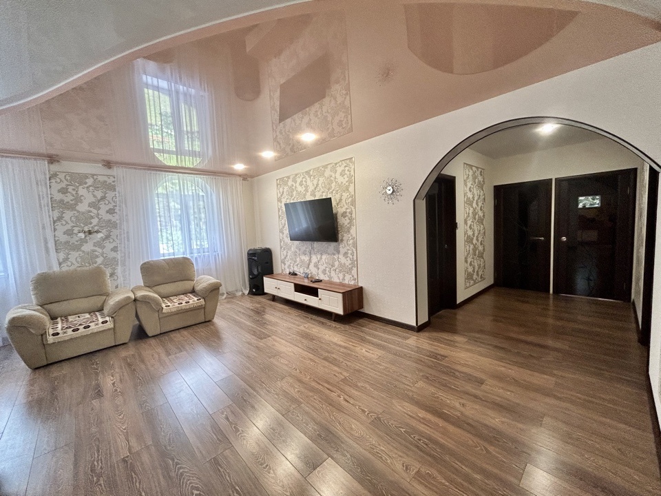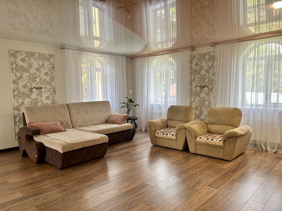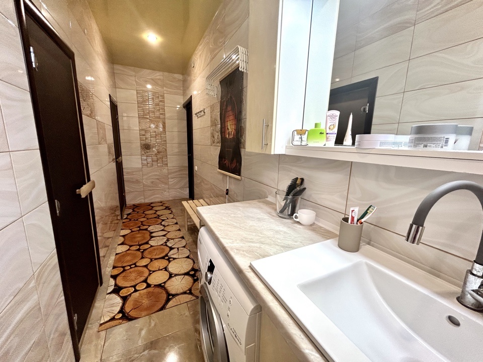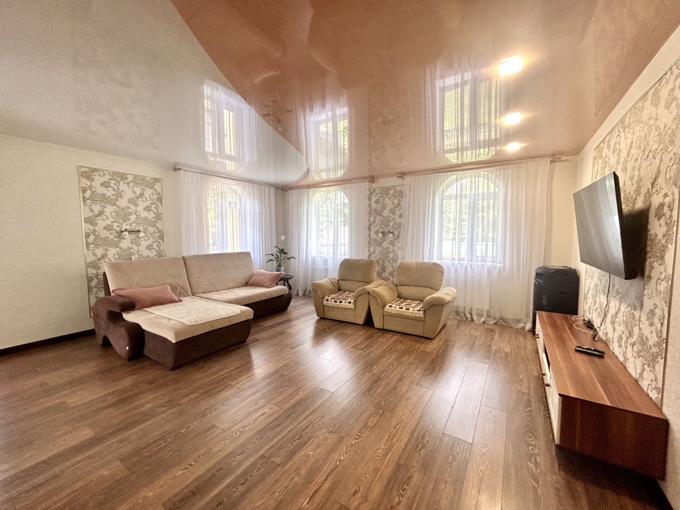 1-й этаж - Жилая площадь 124 кв.м. Куда входит большая кухня-столовая (23, 2 кв.м.), просторная гостинная в которой вы сможете собираться всей семьей и принимать гостей ( 36,8 кв.м.), три спальни (15 кв.м., 12 кв.м., 12 кв.м.), просторный сан.узел 15 кв.м где для вашего комфорта имеется сауна.
