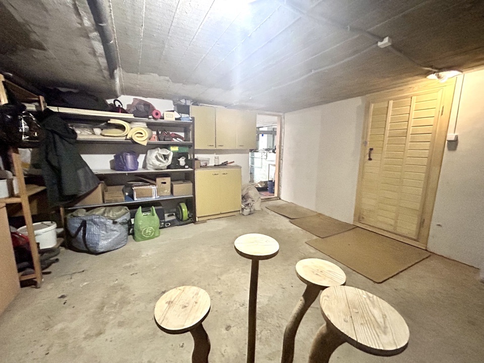 Цокольный этаж - 60 кв м., разделен на три зоны: 1. техническое помещение( котельная), 2. овощехранилище, 3. Большая зона для хранения.