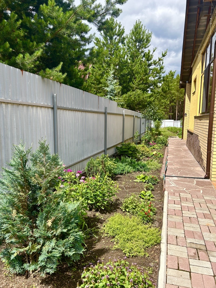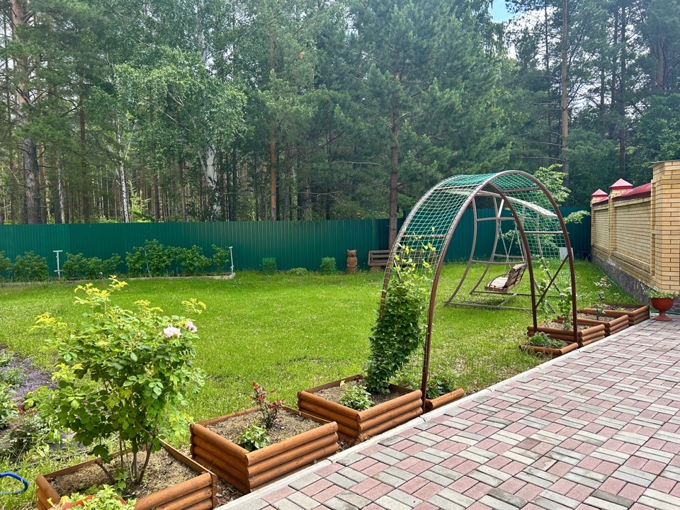 Участок разработан, высажены плодовые деревья, декоративные кустарники, имеются теплицы. Проводятся ландшафтные работы.