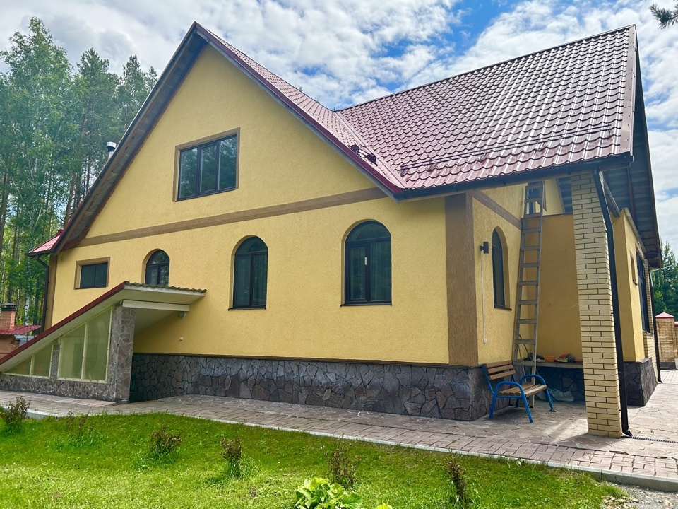 Фасад дома: штукатурка-короед + покраска.